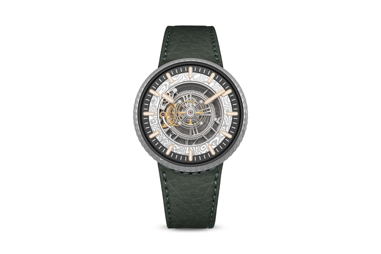 Cadran ajouré avec une pièce en Damasteel® fixée à la roue des heures