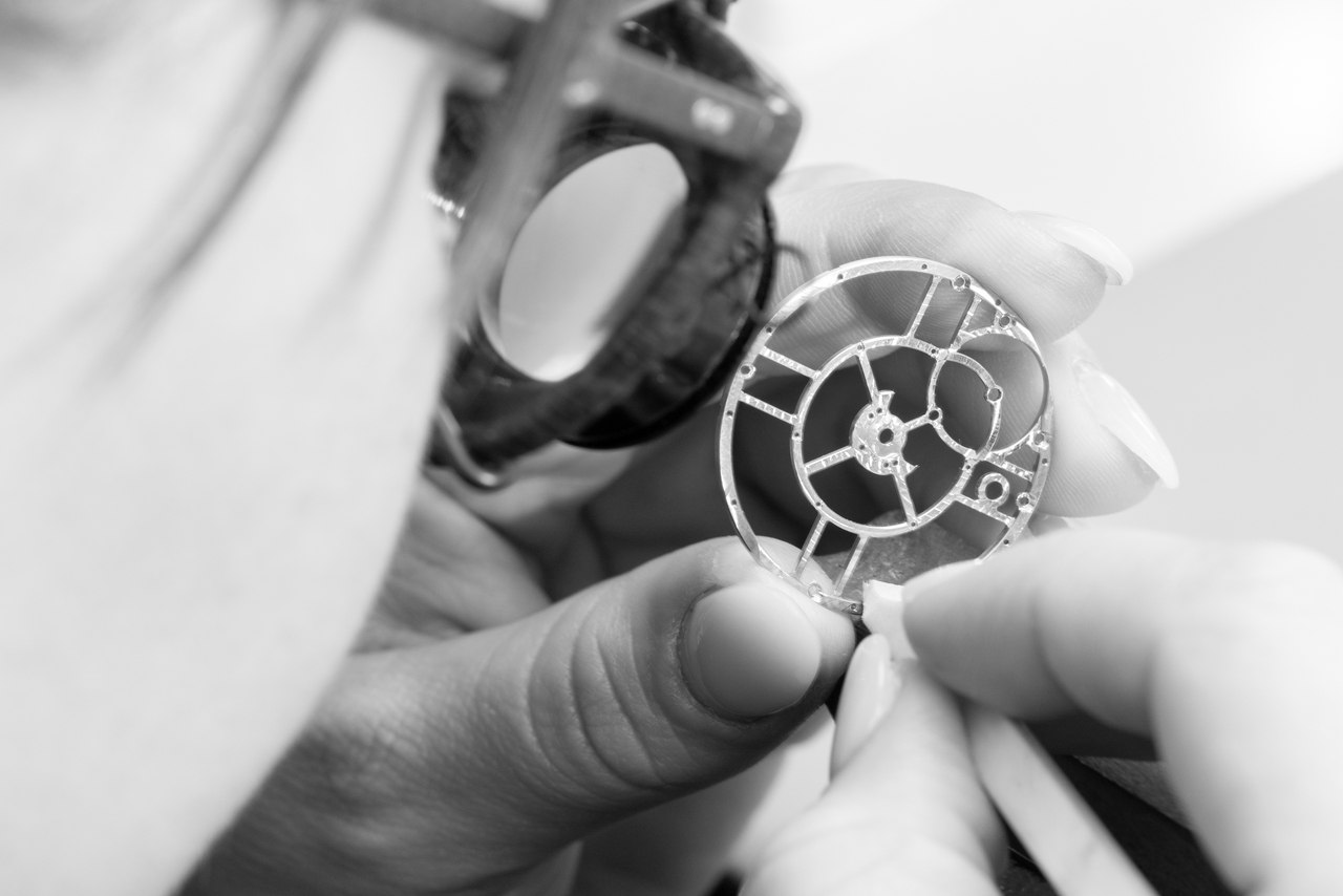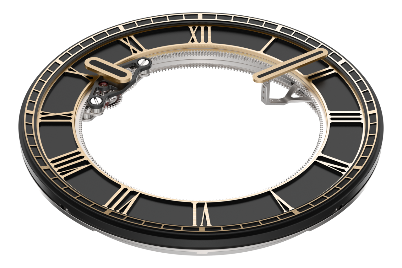 Cadran en or 18 carats grainé en noir, rehaut en or 18 carats avec sablage opalin