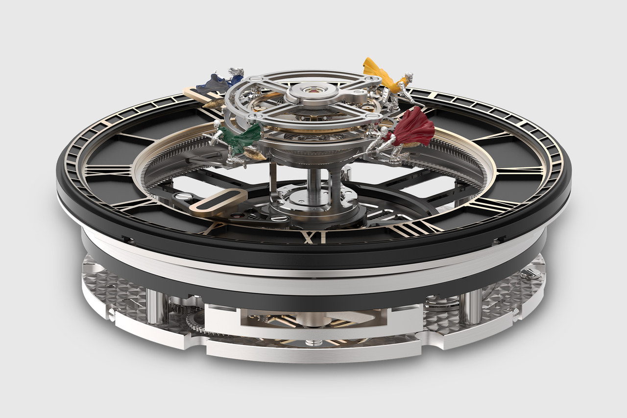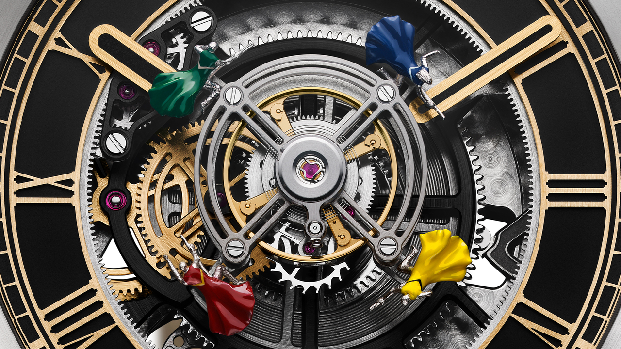 18k gold black grained dial and 18k gold inner bezel with opaline sandblasted finish