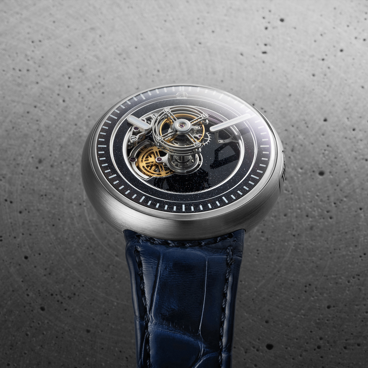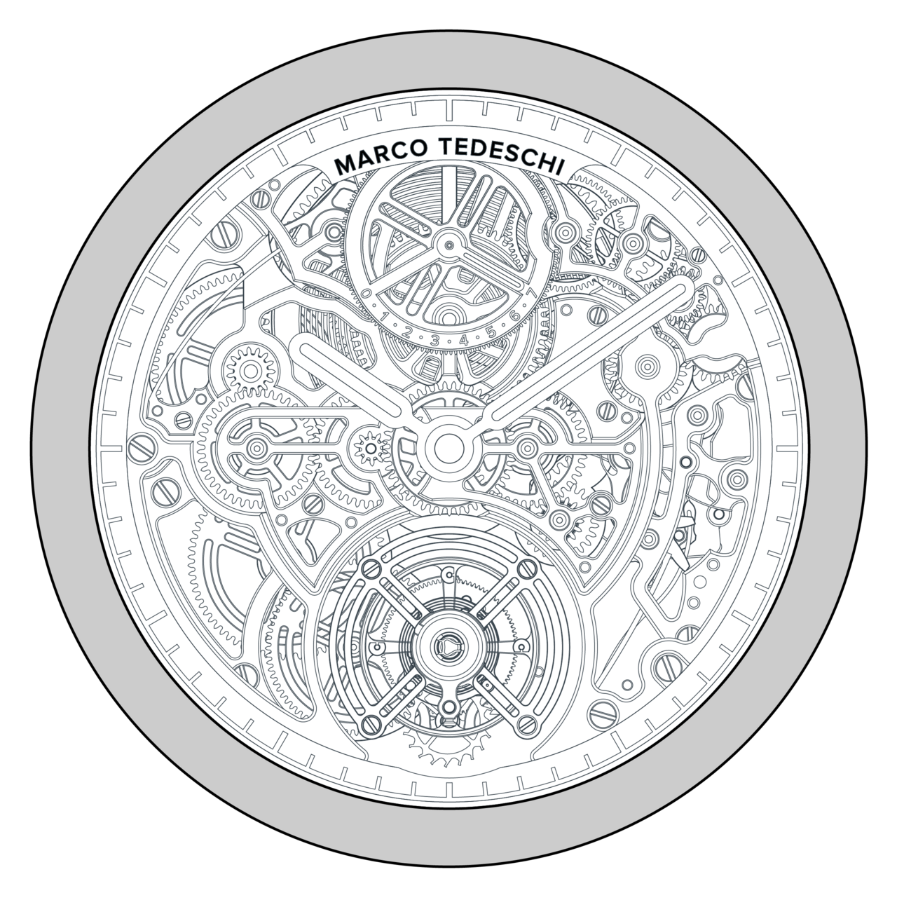 By positioning the regulating organ above the movement, Marco Tedeschi opens up the view across the entire construction and enhances its mechanical legibility. This original architecture introduces a new approach to watchmaking composition, where the tourbillon becomes both the technical point of balance and the visual center of the watch.