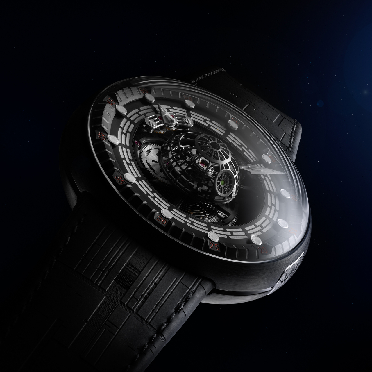 In collaboration with Disney & Lucasfilm, KROSS STUDIO presents its first Collector Set, a Death Star Central Tourbillon watch alongside an authentic kyber crystal movie prop from Rogue One: A Star Wars Story, housed in an Imperial kyber crystal container.