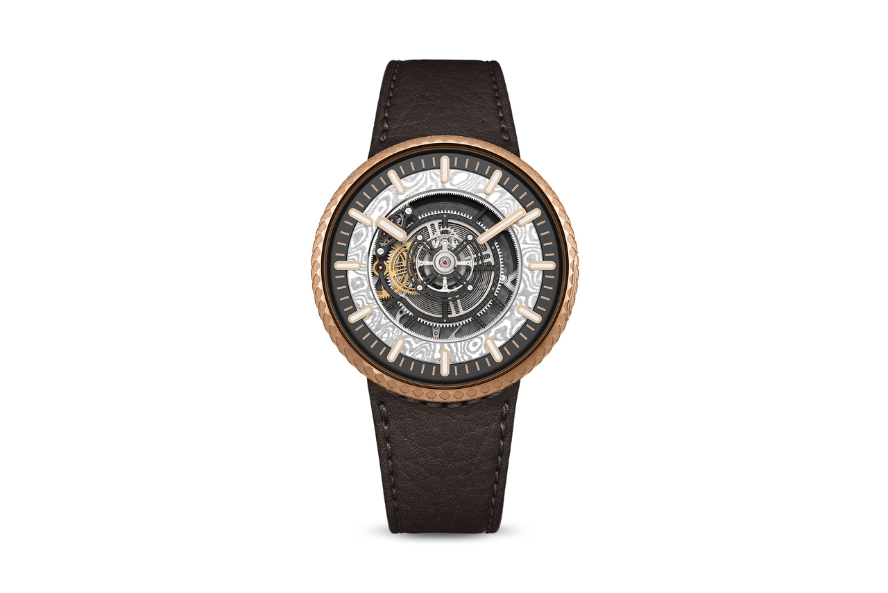 Cadran ajouré avec une pièce en Damasteel® fixée à la roue des heures