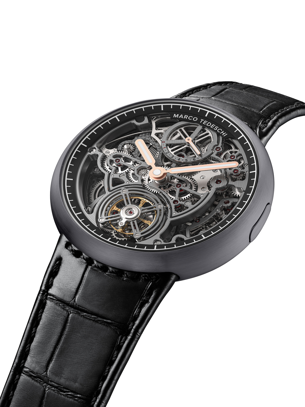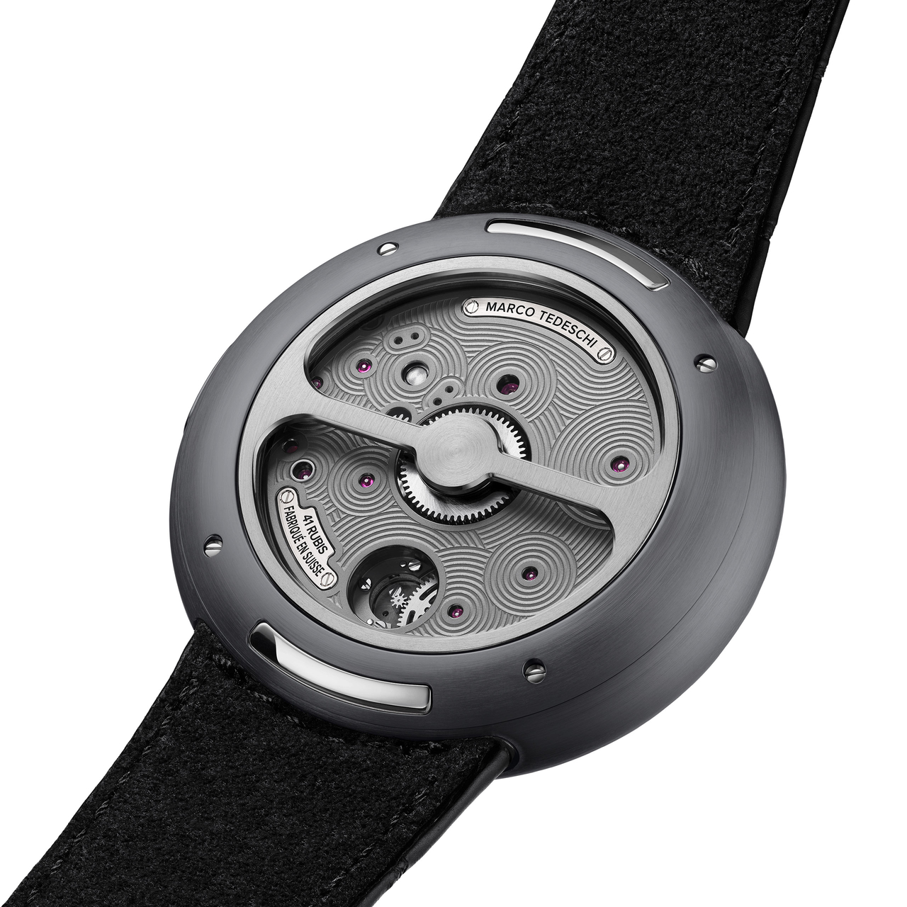 La philosophie de construction de Marco Tedeschi repose sur un principe simple : réduire chaque élément à son expression la plus essentielle, dans un langage minimaliste pensé pour servir ce qui compte réellement. La performance n’est jamais recherchée au détriment de la précision ; les deux doivent coexister dans un équilibre parfait, au service exclusif de ce qui est utile et pertinent pour le mouvement lui-même. Aucune extravagance, aucune quête de record. Seulement la solution juste, exactement là où elle est nécessaire. Marco Tedeschi cherche également à réduire la complexité où cela est possible. Moins de composants signifie moins de points de défaillance. L’efficacité par la conception. L’esthétique n’est jamais imposée : elle en découle naturellement. La forme suit le mouvement.