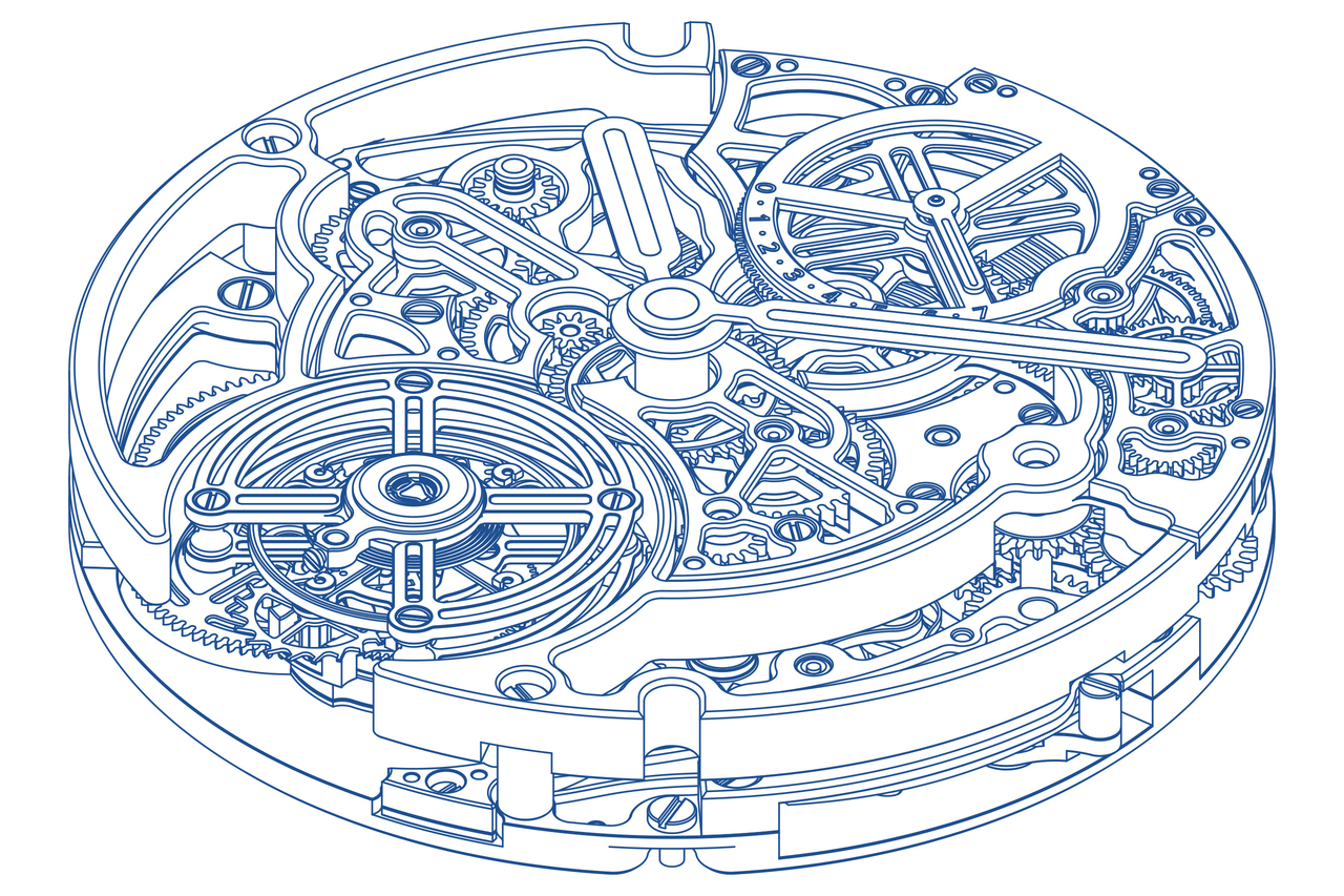Le mouvement est doté d’un tourbillon volant positionné à 6 heures, oscillant à une fréquence de 3 Hz. Cette dernière garantit stabilité, précision et chronométrie durable sans solliciter excessivement le système. Énergie et amplitude maîtrisées.